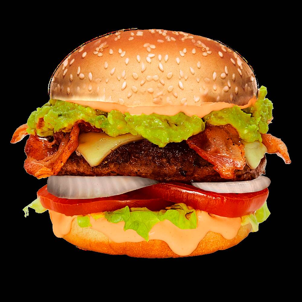 ADEREZO ANIMAL STYLE, GUACAMOLE, TOCINO, QUESO MANCHEGO, CARNE DE RES, CEBOLLA, TOMATE Y LECHUGA.