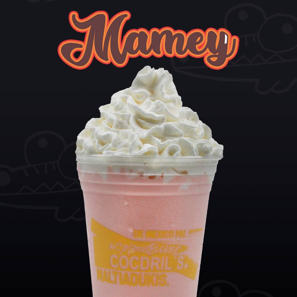 Malteada de mamey Malteada a base de leche con helado de vainilla, concentrado de mamey y crema batida.