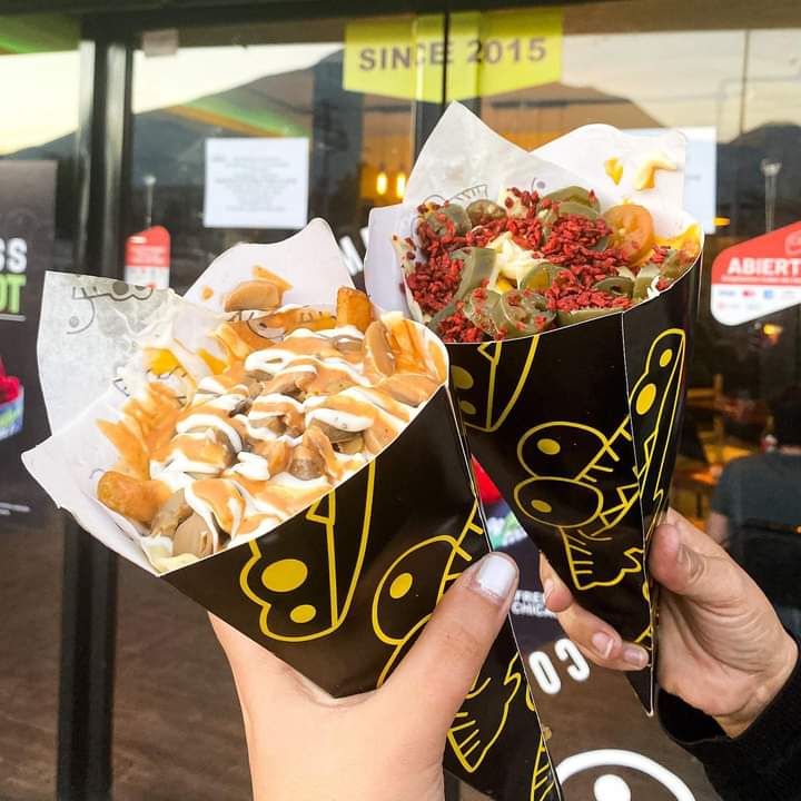 Papas a la francesa, sazonador a elección, guacamole y queso gratinado.
