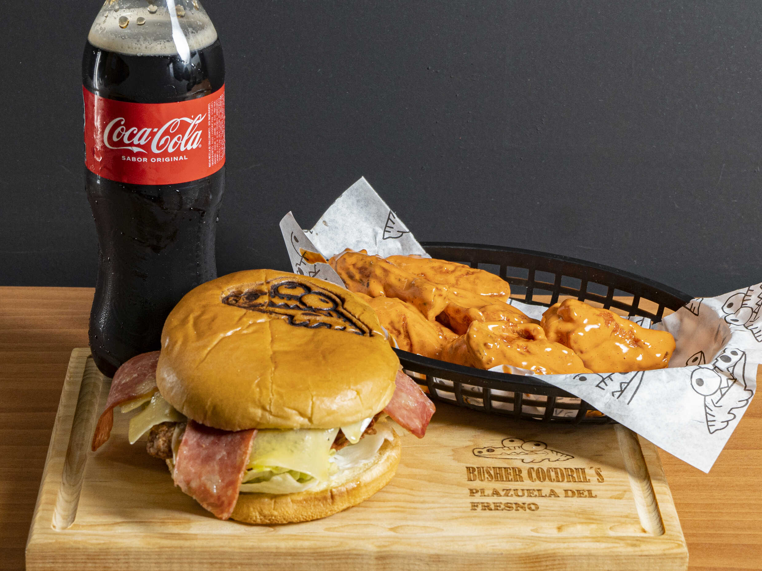 Hamburguesa a elegir, 250 gr de alitas ó boneless y 1 refresco.