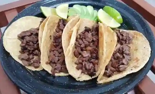 4 Tacos con cebolla asada, salsa de la casa, sirloin y proteína adicional a elegir.