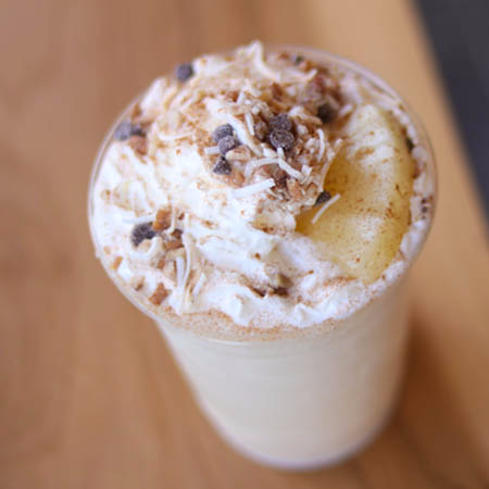 Leche con chocolate blanco dulce, Espresso, Frappeado de 500ml.