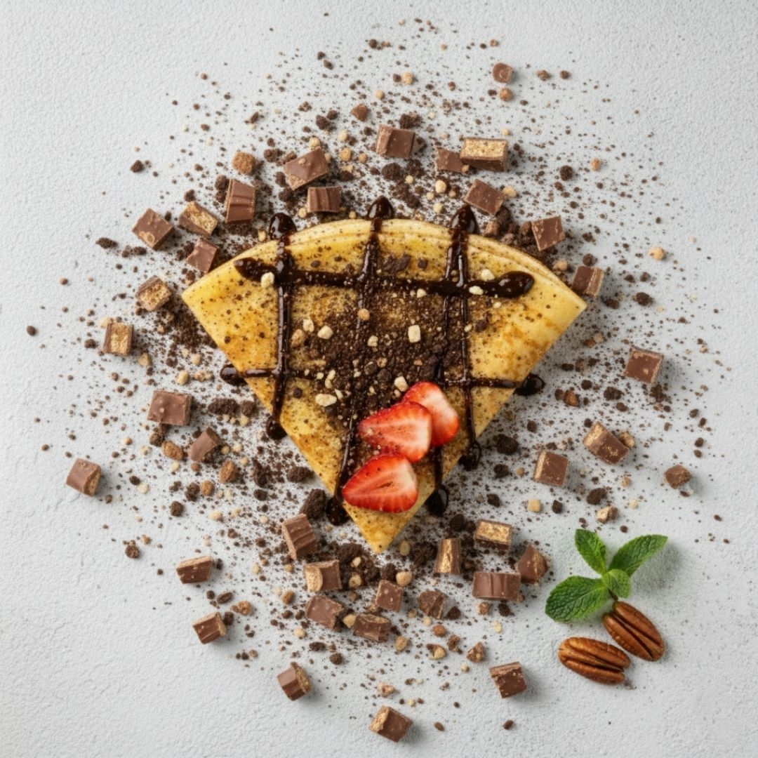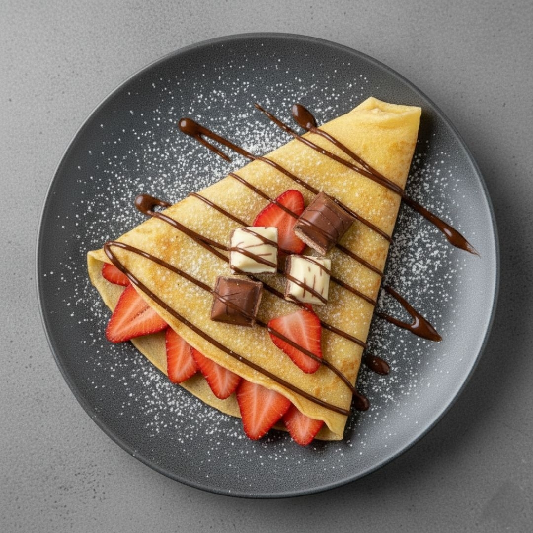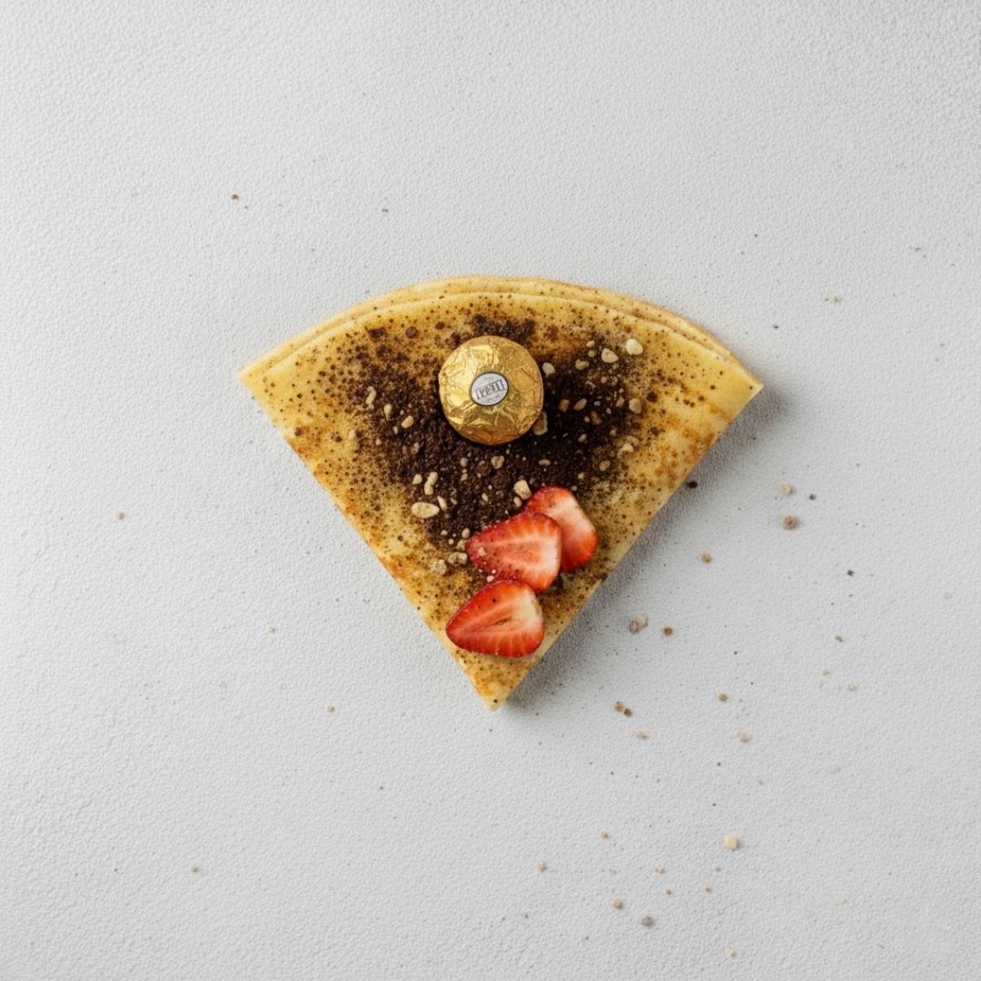 Crepa de nutella, chocolate, crema de vainilla y kinder delice.