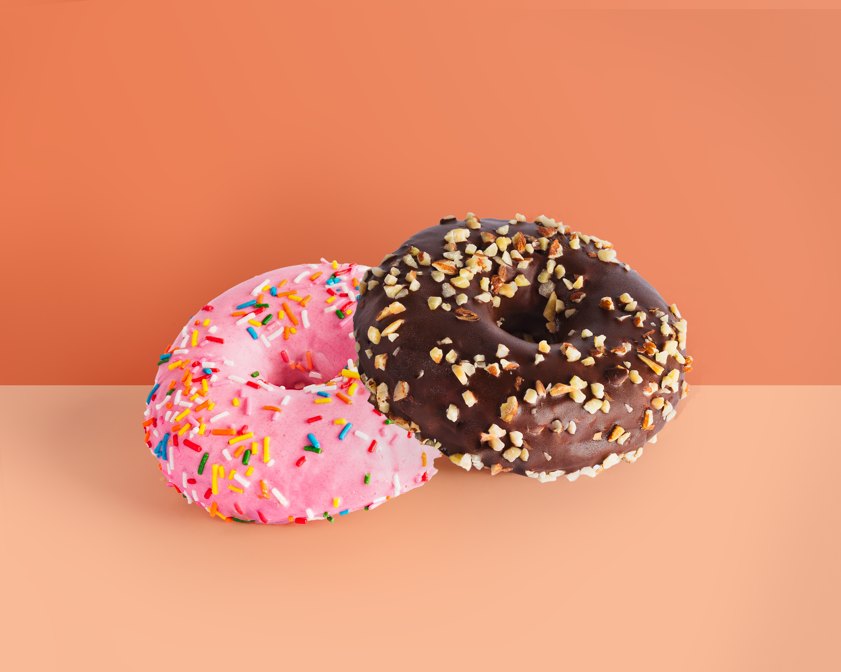 Deliciosas donas de chocolate y vainilla rellenas. El precio es por pieza (1 dona).