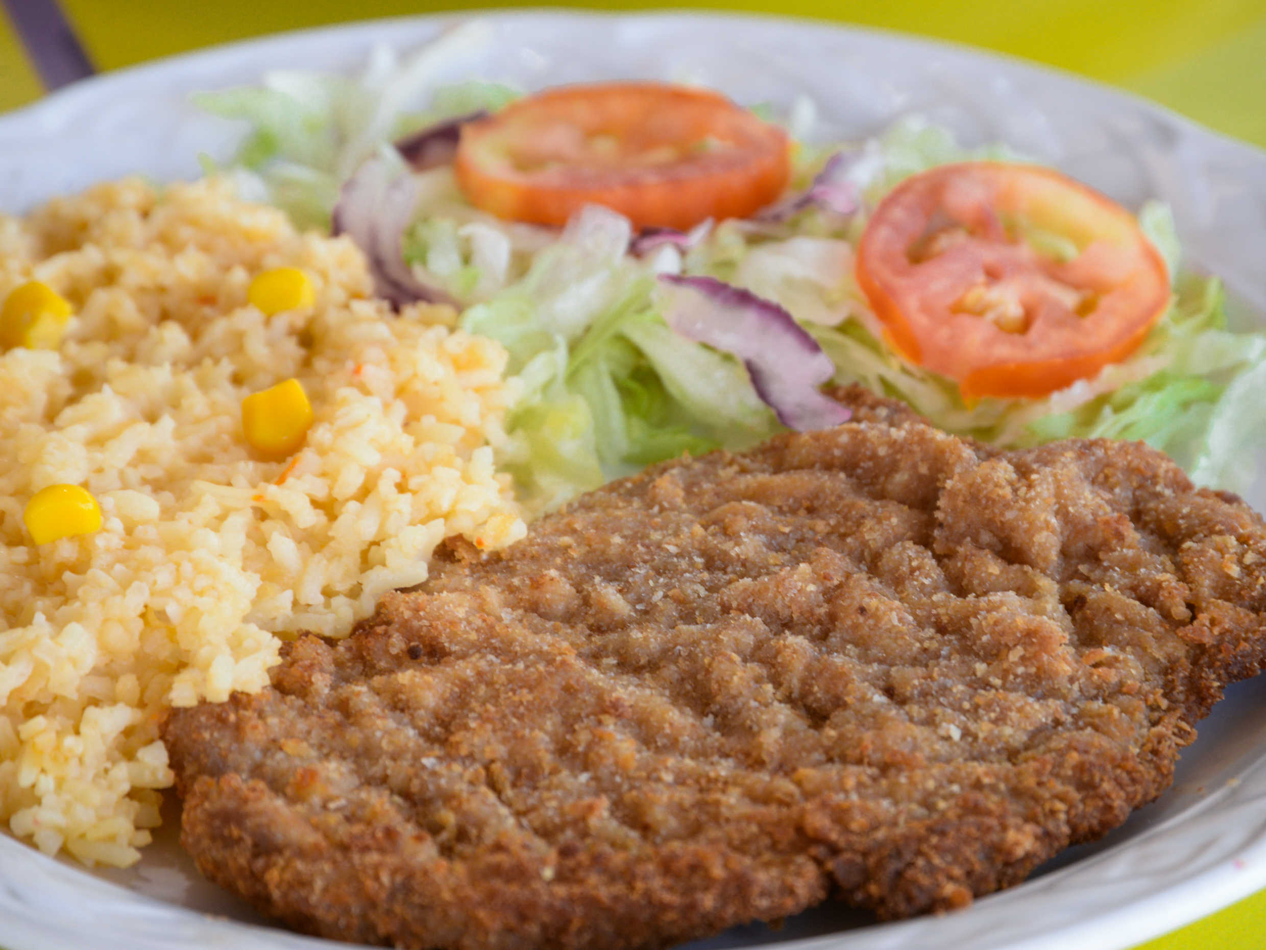 Milanesa Empanizada, Incluye Arroz o Espagueti, Lechuga, Tortillas, Salsa Casera