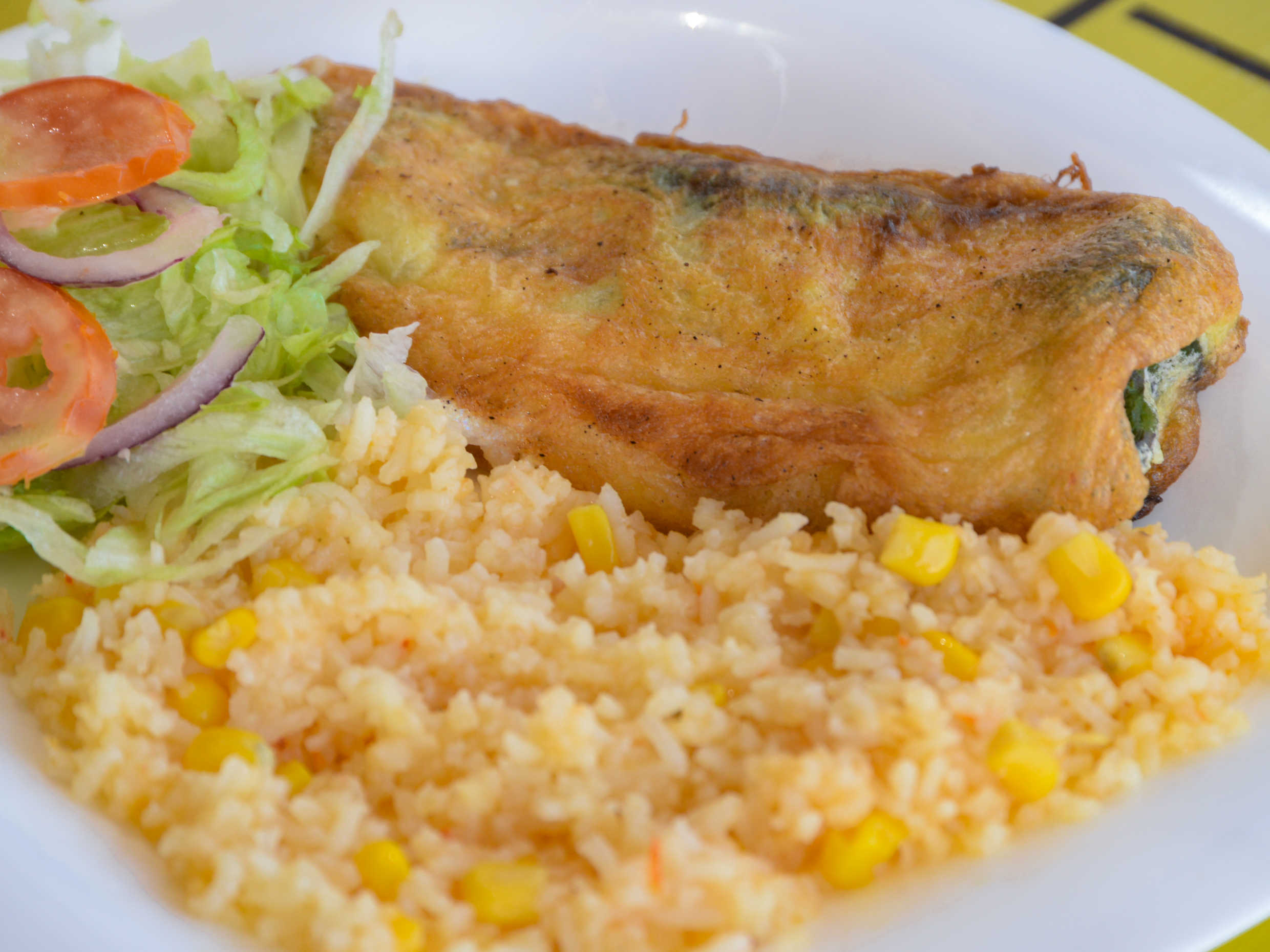 Chiles Relleno, Incluye Arroz o Espagueti, Frijoles o Lechuga, Tortillas, Salsa Casera