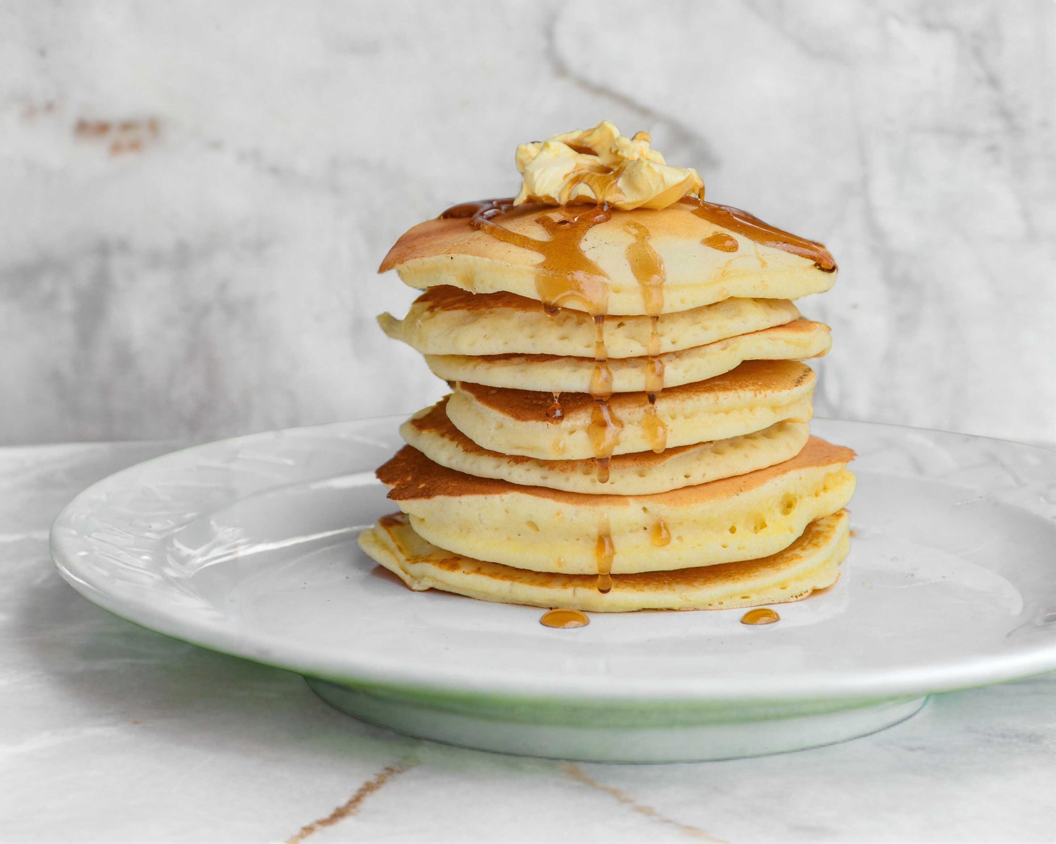 Orden de Hotcakes (4 piezas) Incluye Miel, Mantequilla, Mermelada Fresa