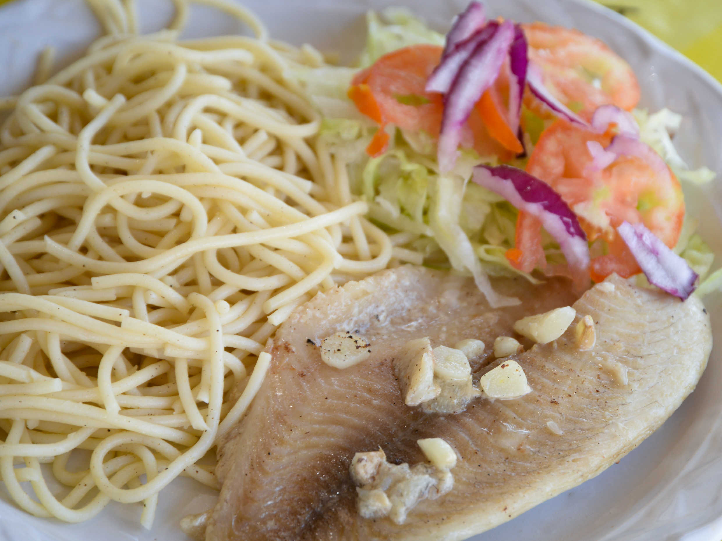 Filete de Pescado (Filete Empanizado, Al Mojo de Ajo, Ala Mexicana) Incluye Arroz o Espagueti, Ensalada, Tortillas y Salsa Casera