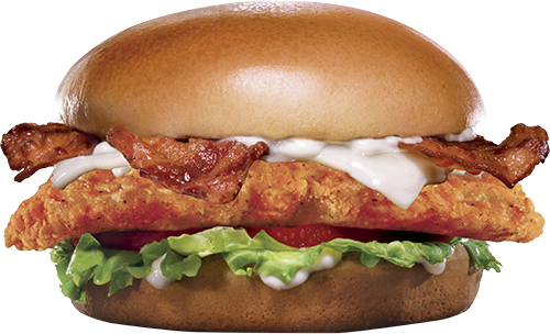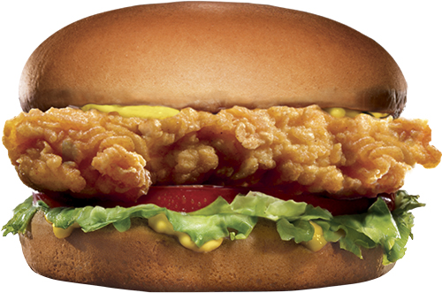 2 tiras de pechuga de pollo empanizadas, aderezo ranch, lechuga, y tomate en pan sencillo sin ajonjolí