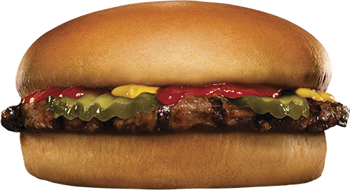 Hamburguesa con carne 100% de res asada a la parrilla, mostaza,catsup y pepinillos.