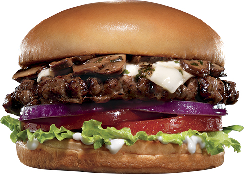Hamburguesa con carne 100% Black Angus asada a la parrilla, mayonesa, lechuga,tomate,cebolla,potobello y queso suizo. En pan recién horneado