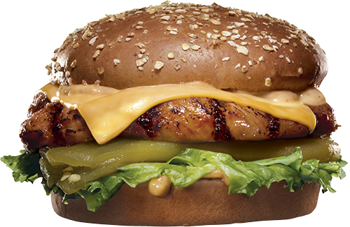 Sandwich con pechuga de pollo a la parrilla, queso americano, chilaca california, lechuga y salsa santa fe, en pan integral