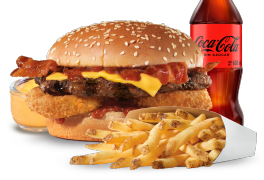 Hamburguesa Western Bacon + papas medianas + 1 refresco.