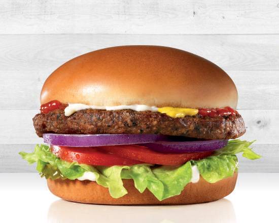 Hamburguesa con carne 100% de res asada a la parrilla, queso estilo americano, lechuga, y aderezo classic.