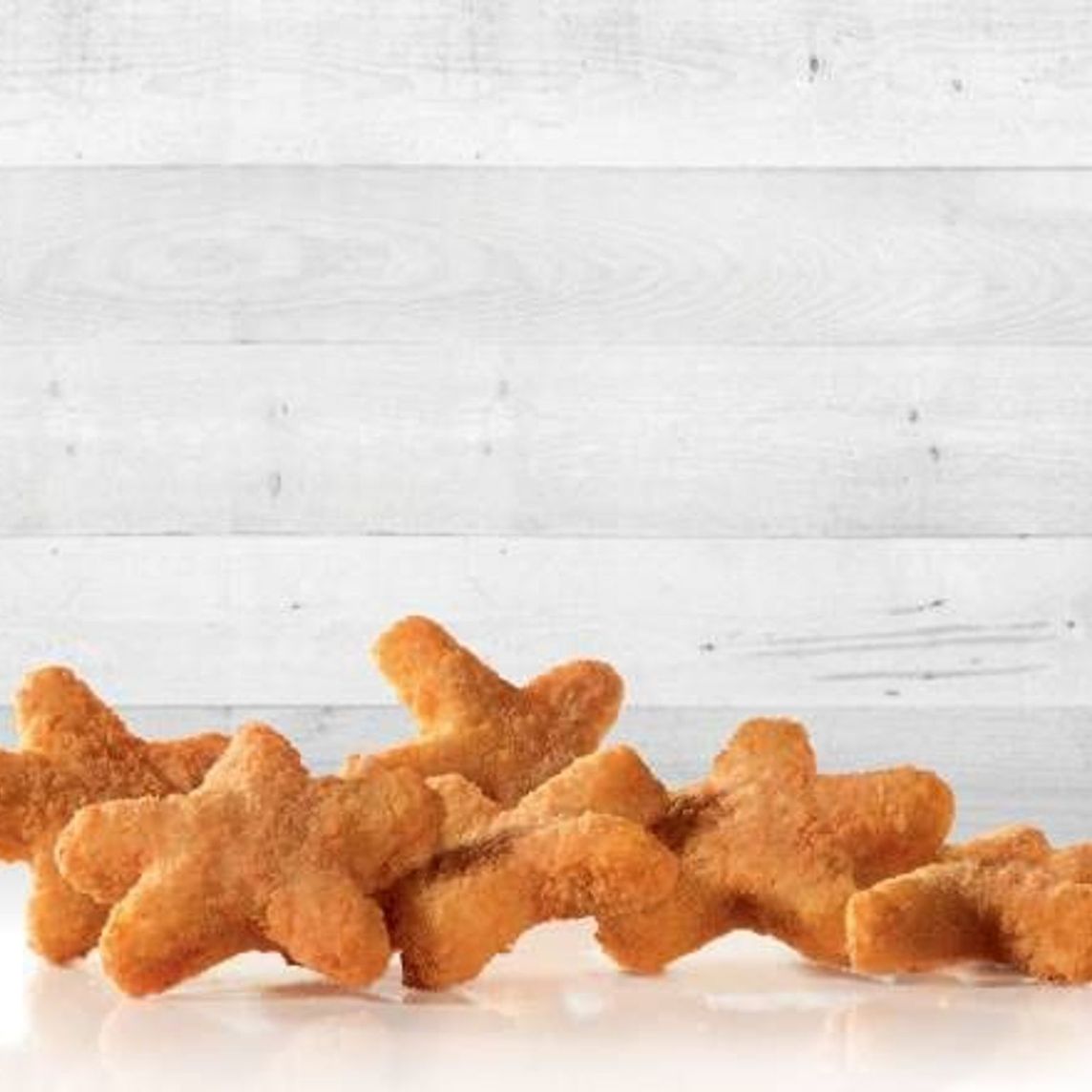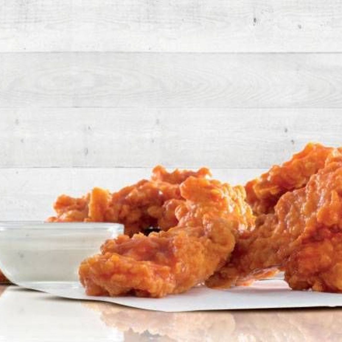 2 tiras de Hand-Breaded Chicken Tenders, aderezo Santa Fe, rodajas de chile jalapeño, queso pepperjack, lechuga y tomate en pan blanco.