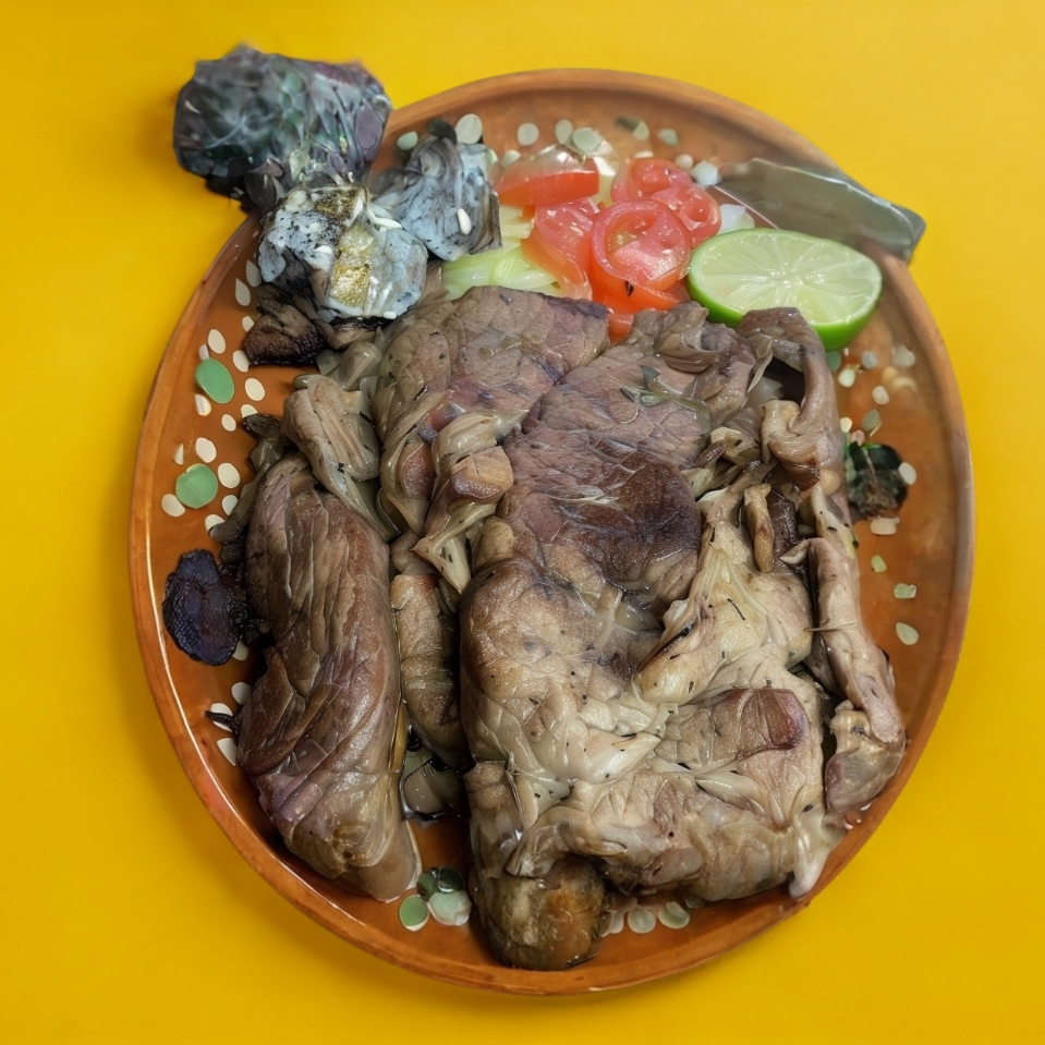 Orden de 300 gramos de carne asada, acompañada de 6 tortillas de maíz, cebolla, lechuga, tomate, 1 quesadilla, salsa y limones. verdura (cebolla y cilantro).