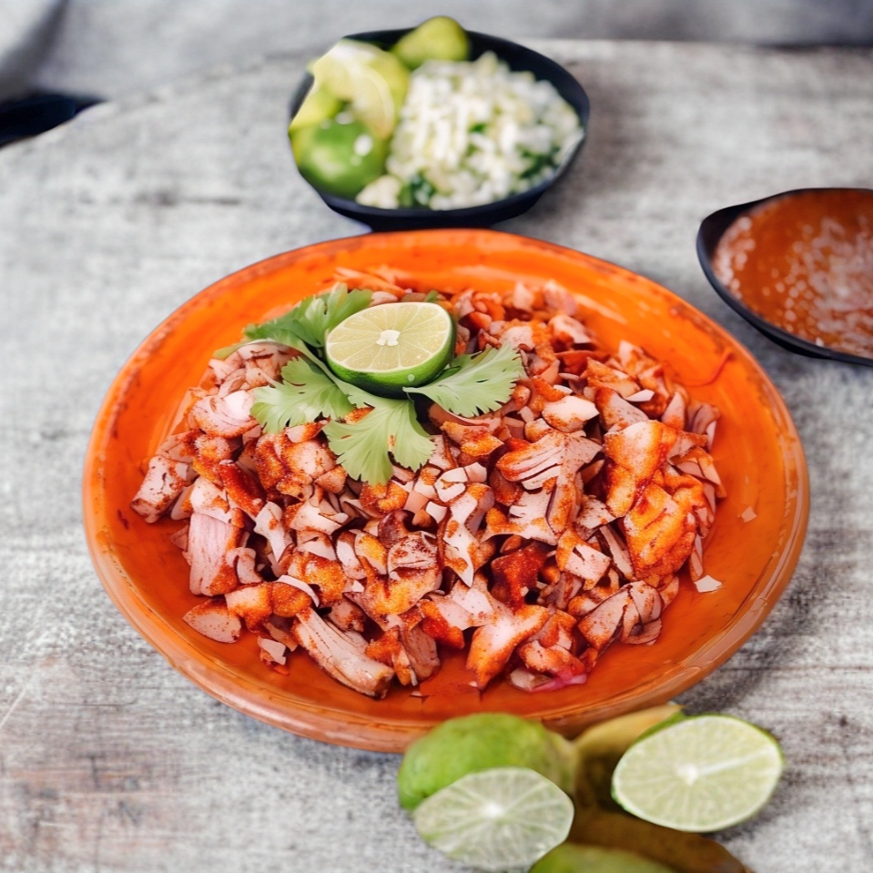.250 gr carnita para taco o entera para lonche. Acompañado de salsas, tortillas y verdura.