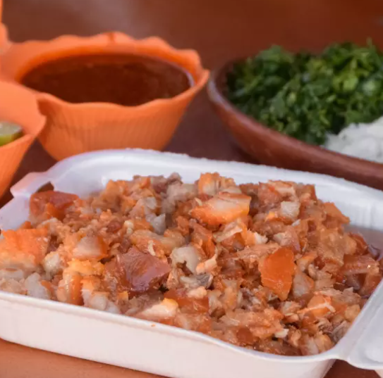1 kilo de carnitas. Incluye tortillas, salsa y verduras.