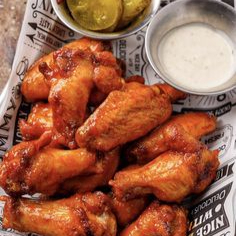 Deliciosas alitas (6) con tu salsa favorita y papas a la francesa con vegetales.