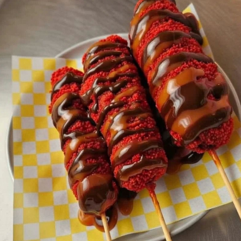 Orden de 3 banderillas flaminhot coreana enchilada con polvo estilo takis fuego crujiente por fuera suave por dentro aderezos a elegir.
