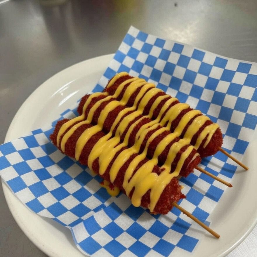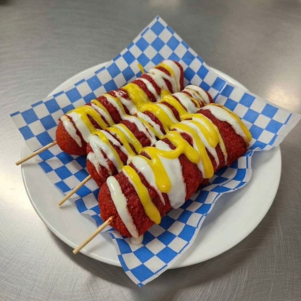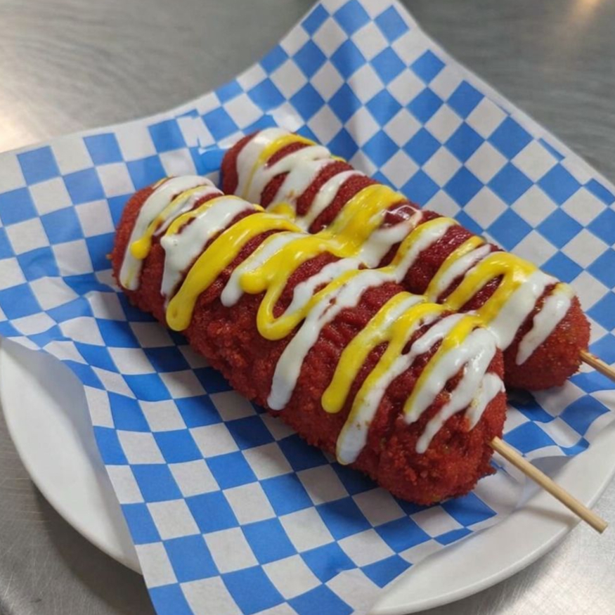 ORDEN INDIVIDUAL BANDERILLA COREANA ENCHILADA CON POLVO ESTILO TAKIS FUEGO. CRUJIENTE POR FUERA SUAVE POR DENTRO. NO INCLUYE ADEREZOS, FAVOR DE ESCOGERLOS A PARTE.
