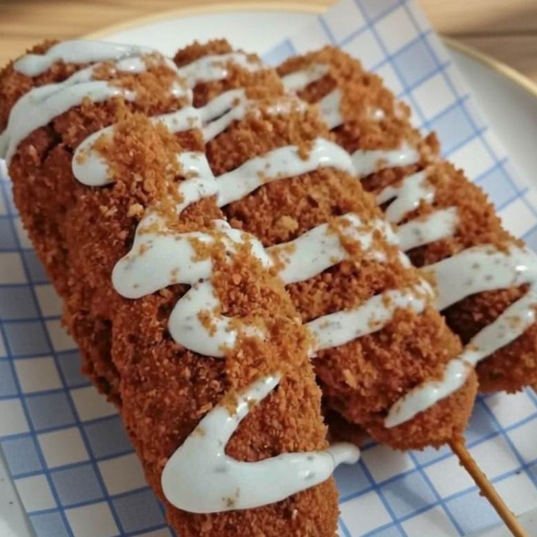 ORDEN DE 3 BANDERILLAS COREANAS CRUJIENTES POR FUERA SUAVE AL INTERIOR, NO INCLUYE ADEREZOS, FAVOR DE ESCOGERLOS A PARTE.