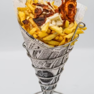 papas fritas, tocino deshidratado y 4 aderezos a tu elección.