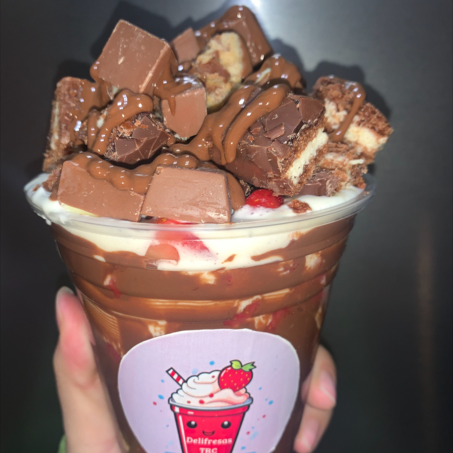 Vaso con nutella + fresas con crema + chocolate kinder + kinder delice + crema batida