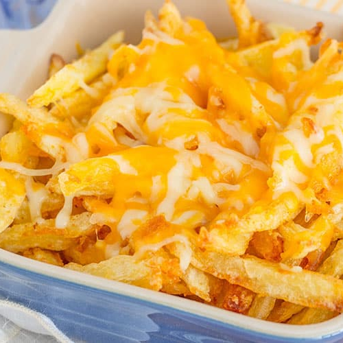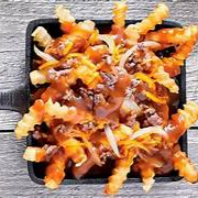 Papas a la francesa con carne de adobada con crema y queso tipo nacho