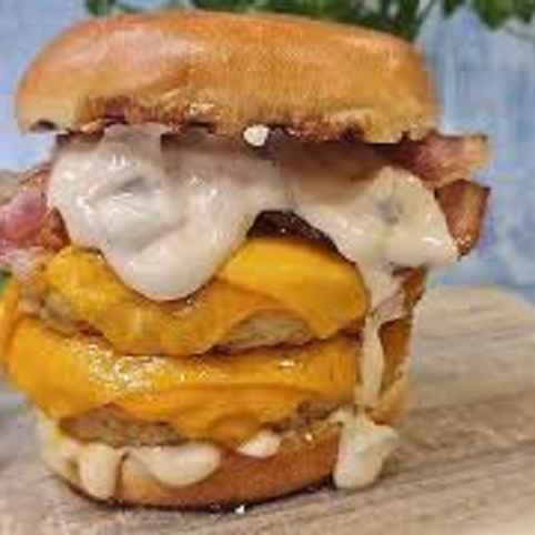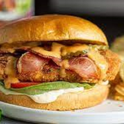 ( 2pzas)120 gr de pechuga de pollo, jamón, 2 rebanadas de tocino, queso, lechuga, cebolla, tomate, aguacate, aderezos