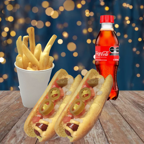 Hot Dog*2 + Papas Fritas*1 + Coca cola orignal 450 ml*1
