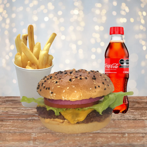 Cheese Burguer*1 + Papas Fritas*1 + Coca cola orignal 450 ml*1
