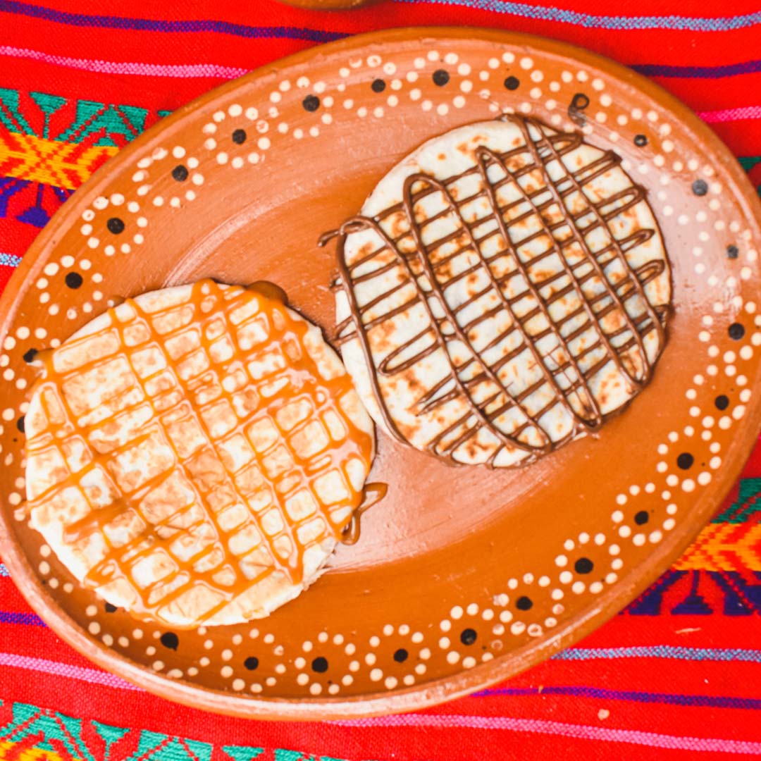 Deliciosa gordita de harina rellena de lechera, cajeta o Nutella.