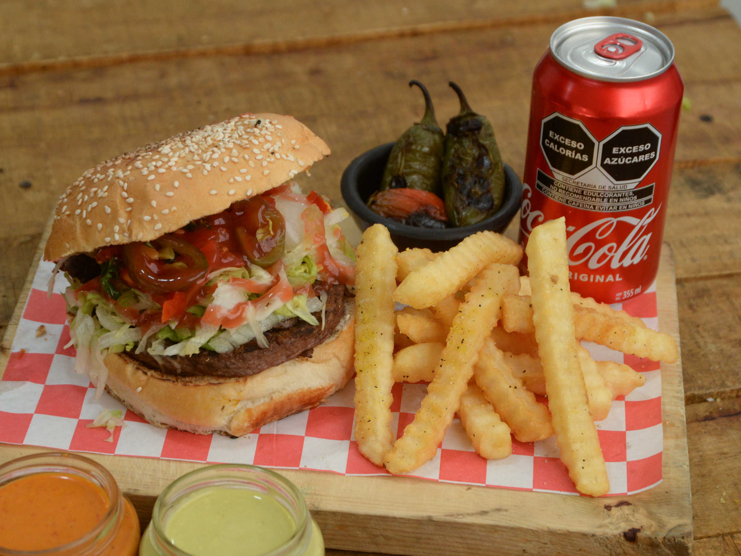 Hamburguesas, orden de papas y 1 refresco en lata.