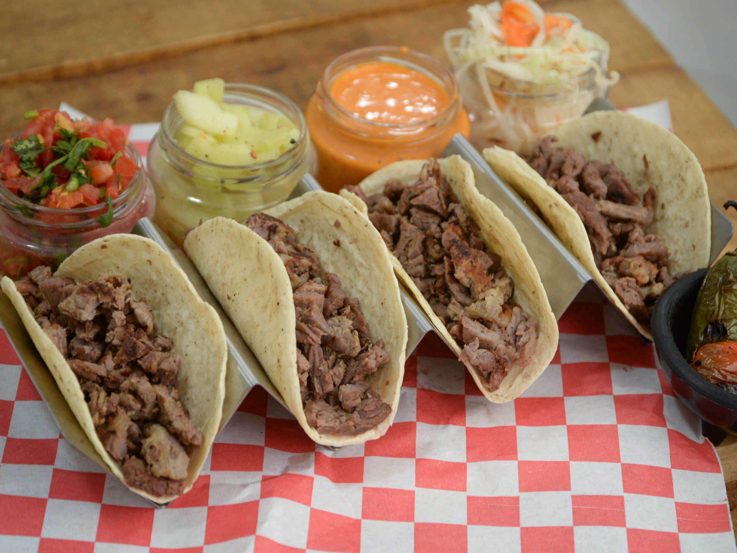 Preparados con tortilla de maíz, acompañados con pico de gallo, salsa y chile toreado.