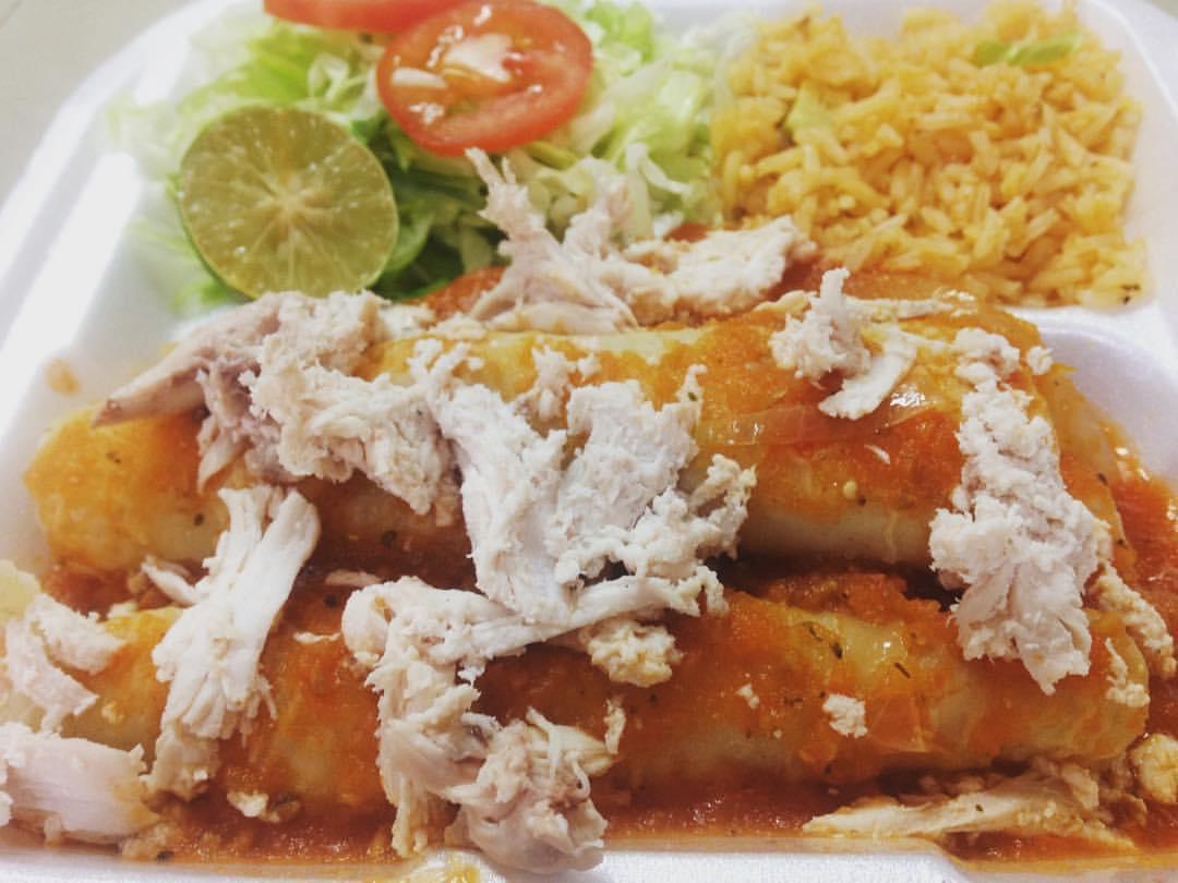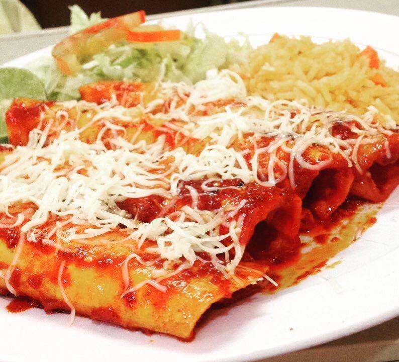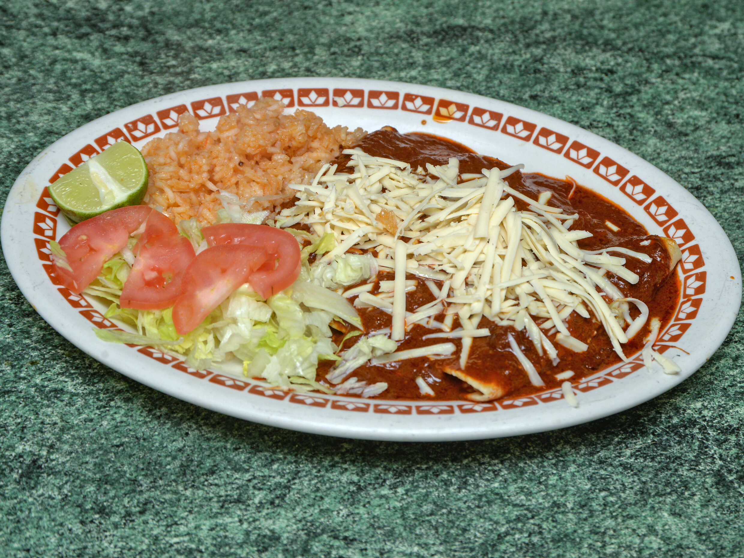 Enchiladas de Queso Rojas Con Arroz y Ensalada.