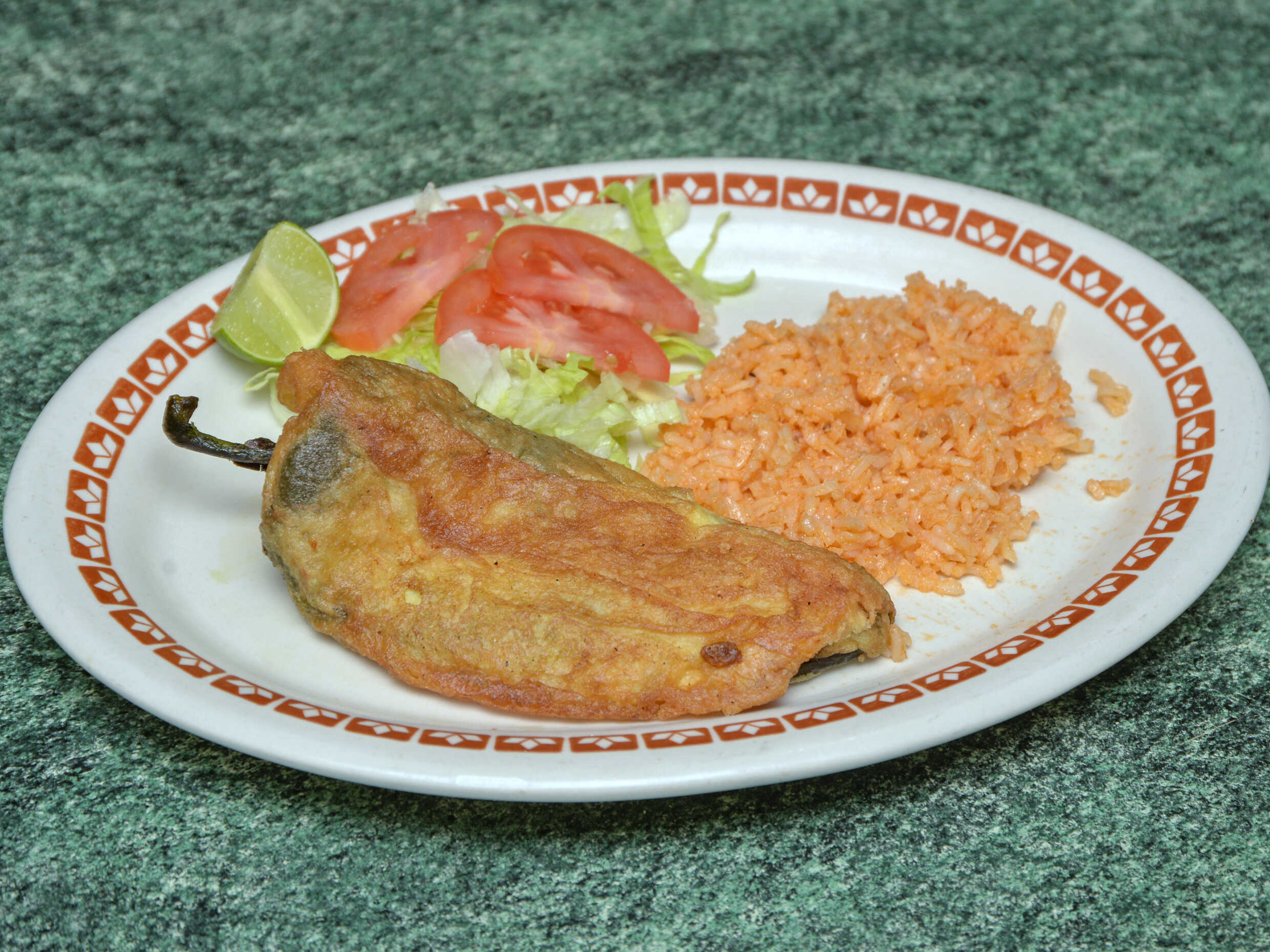 Chile Relleno con Arroz y Ensalada.Chile Relleno de Queso Lampreado.