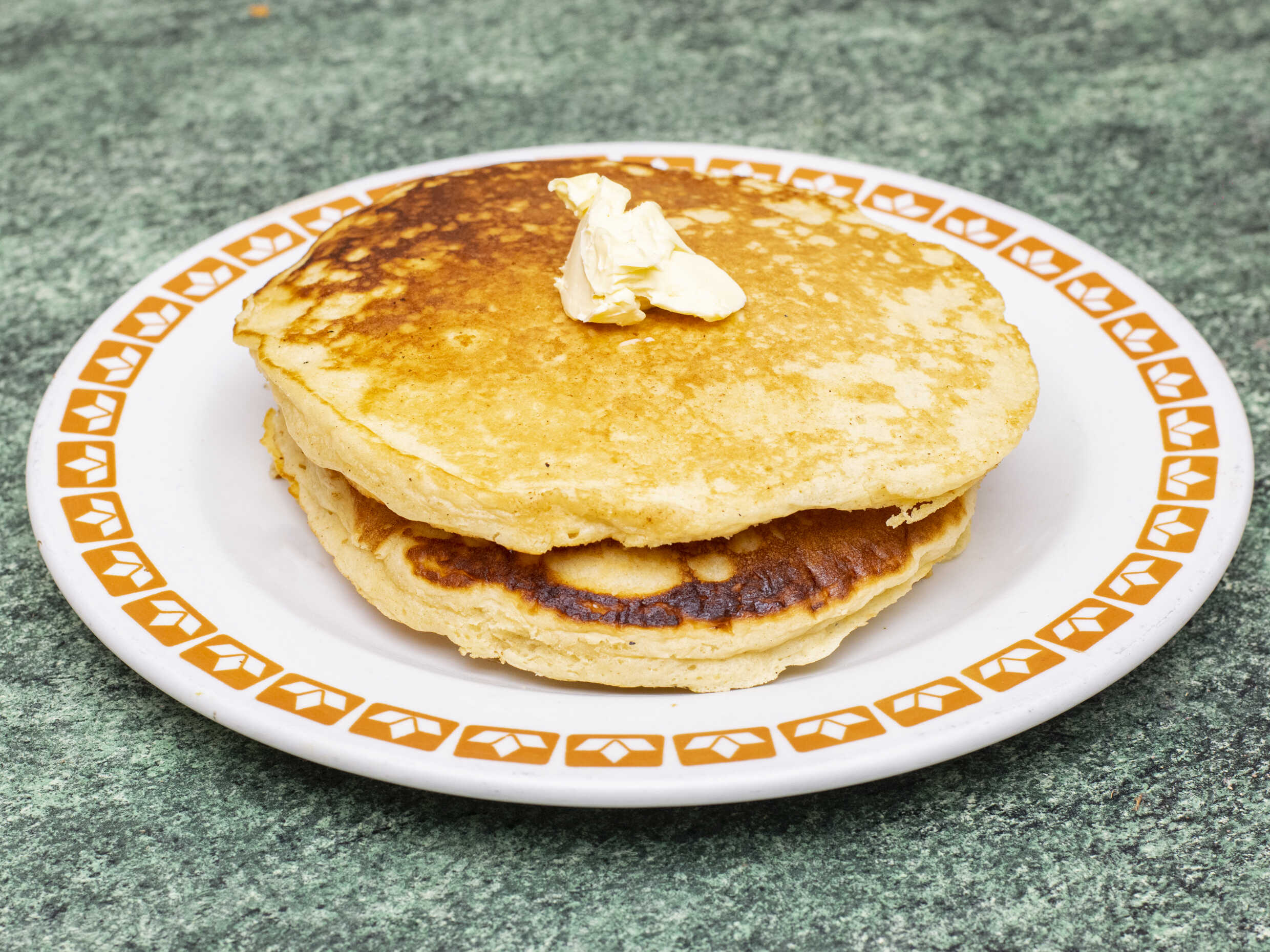 3 Hot cakes con mantequilla y miel maple.