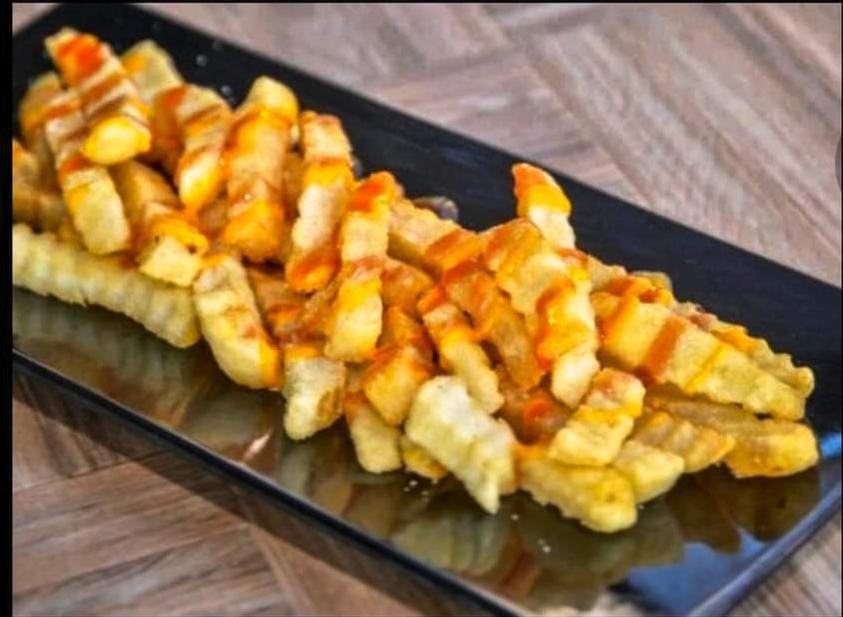 Orden de papas a la francesa con aderezos.