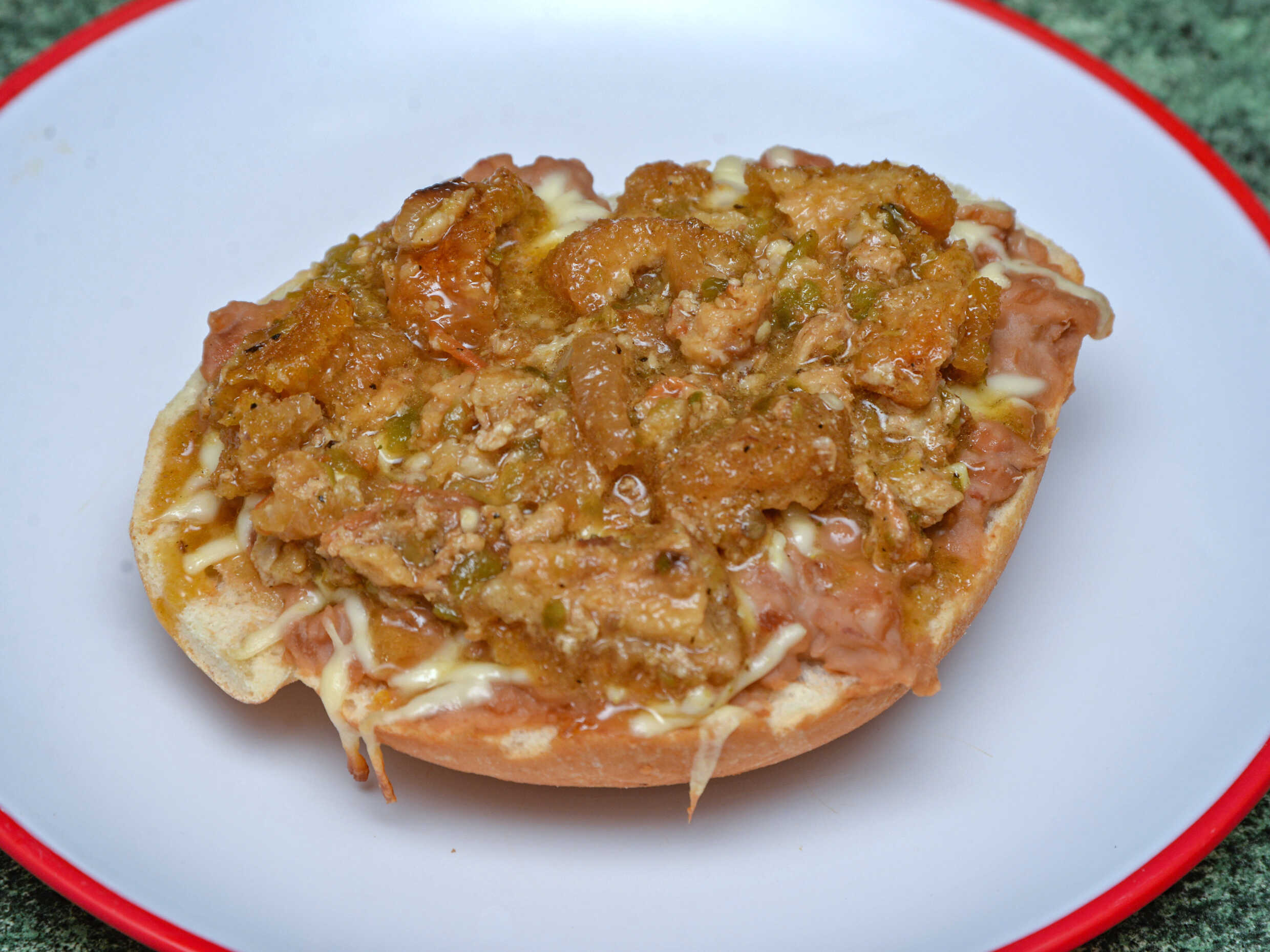 1/2 Pan Francés Frijoles y Queso con Guiso