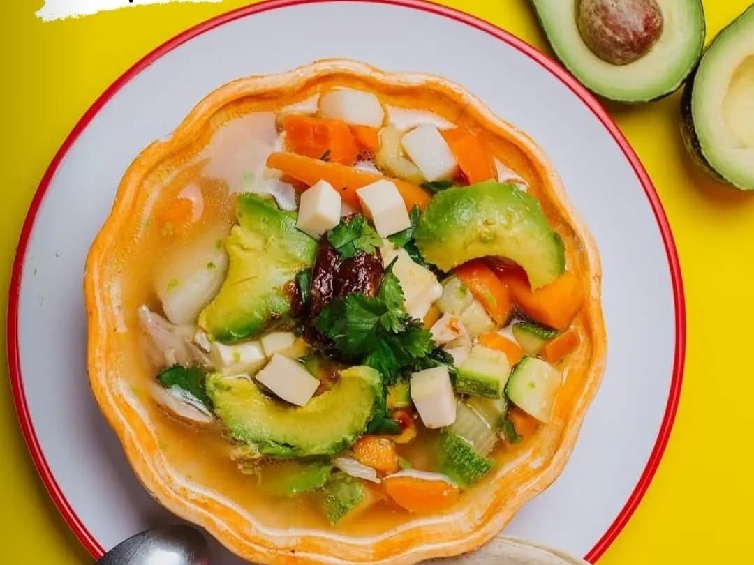 Litro de Caldo de pollo con arroz, pollo , verduras , queso , aguacate , chile chipotle, tortillas , limon y salsa
