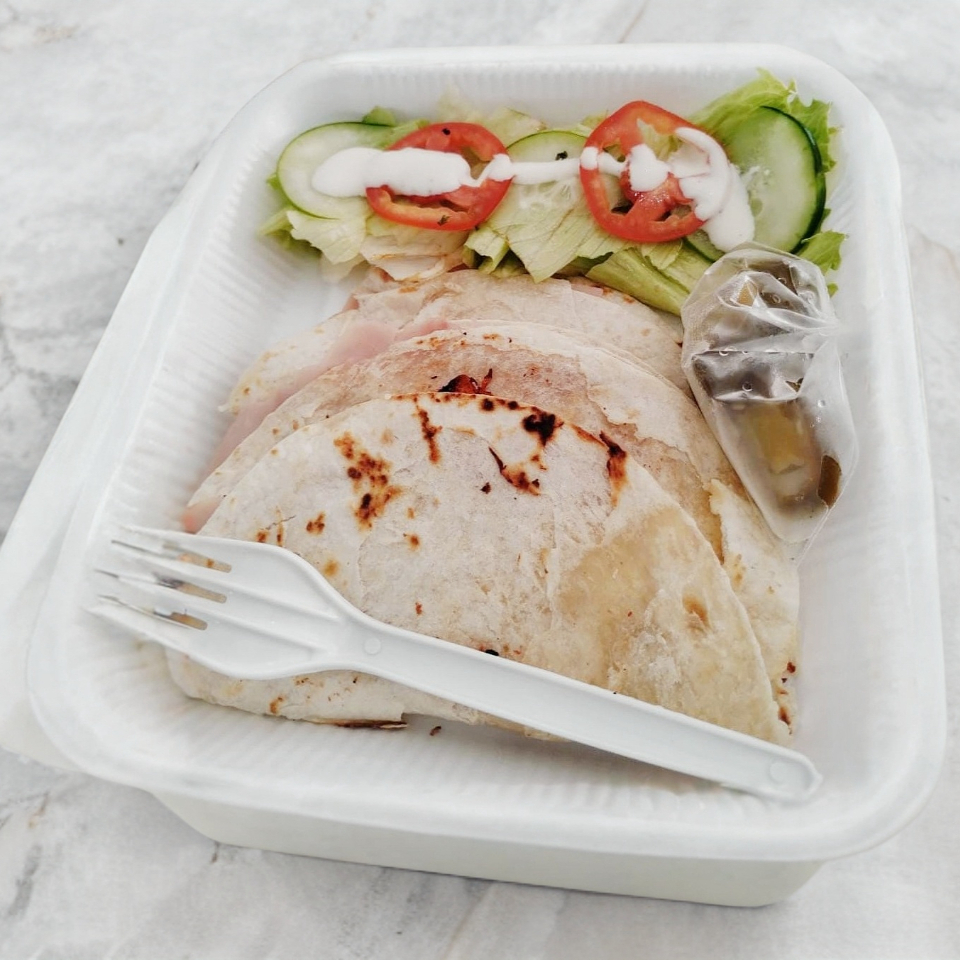 Quesadillas con jamón porcion de ensalada y jalapeño
