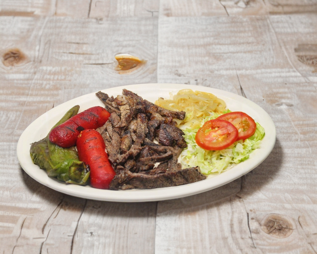 400 gr. De carne asada acompañada de salchicha asada, chilaca, cebolla asada, tortillas y ensalada.