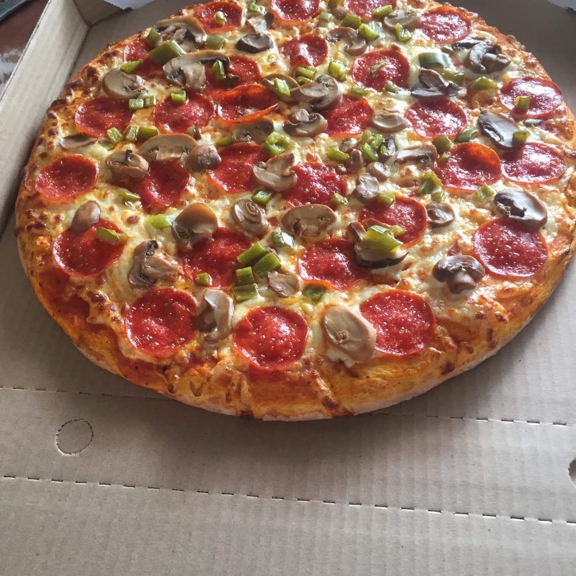 Pizza con pepperoni y champiñones.