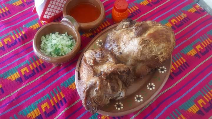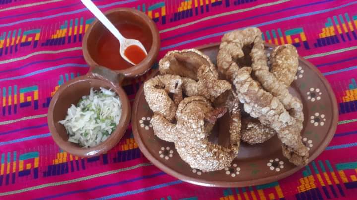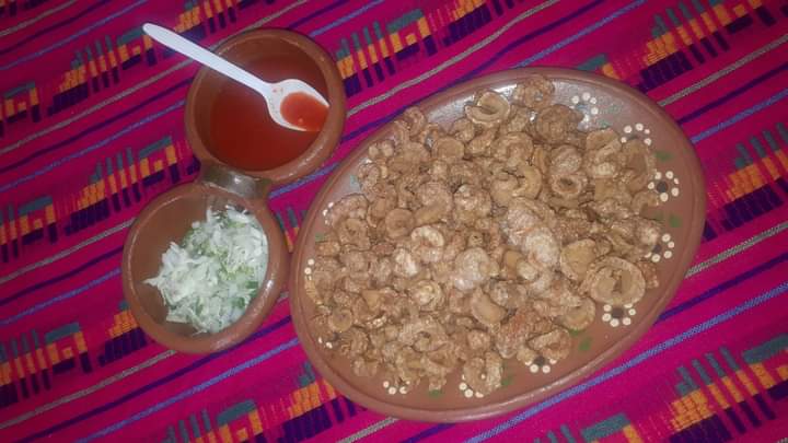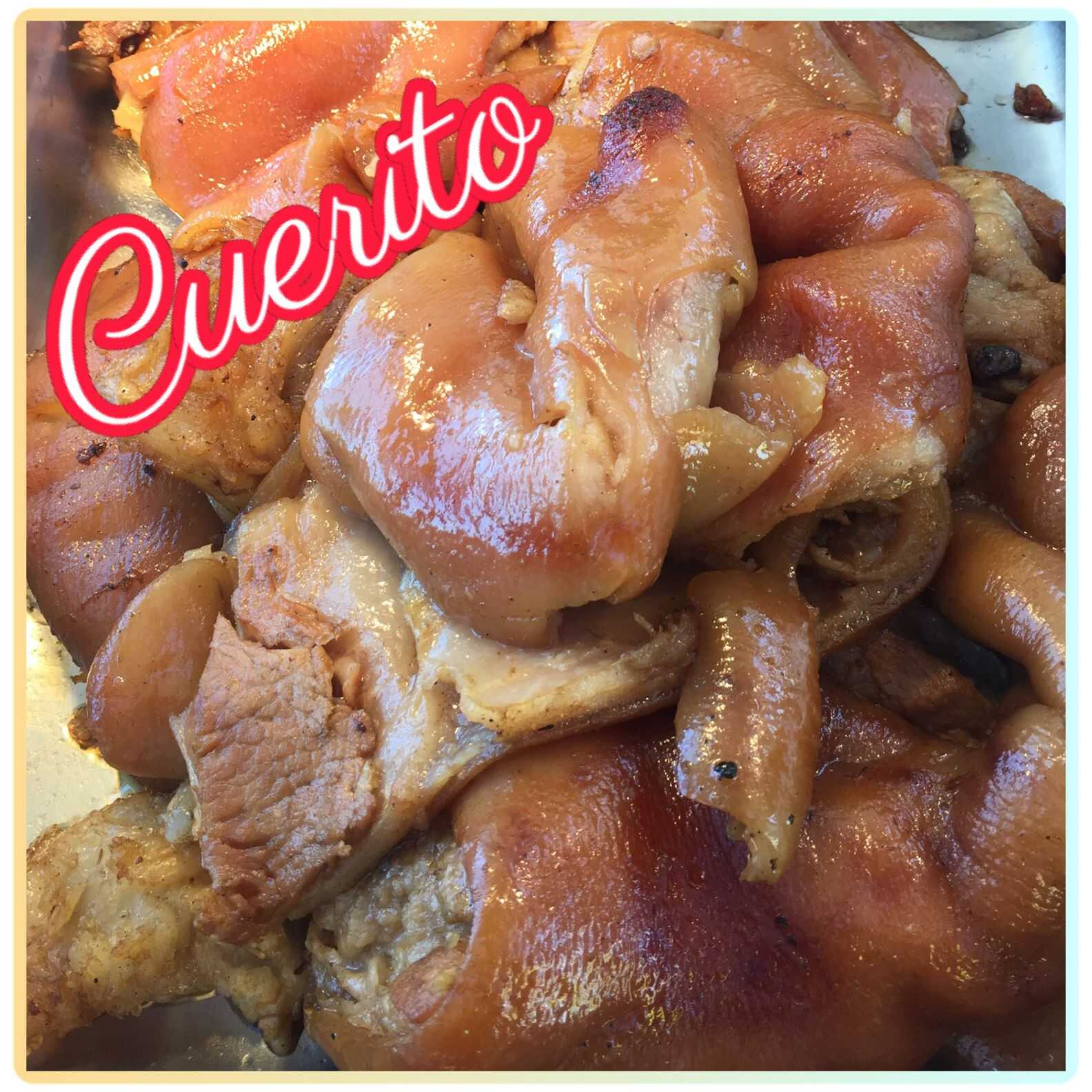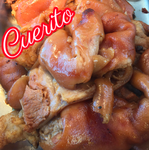 CARNITA, CUERO Y BUCHE, VA ACOMPAÑADO DE SALSA, VERDURA Y TORTILLAS