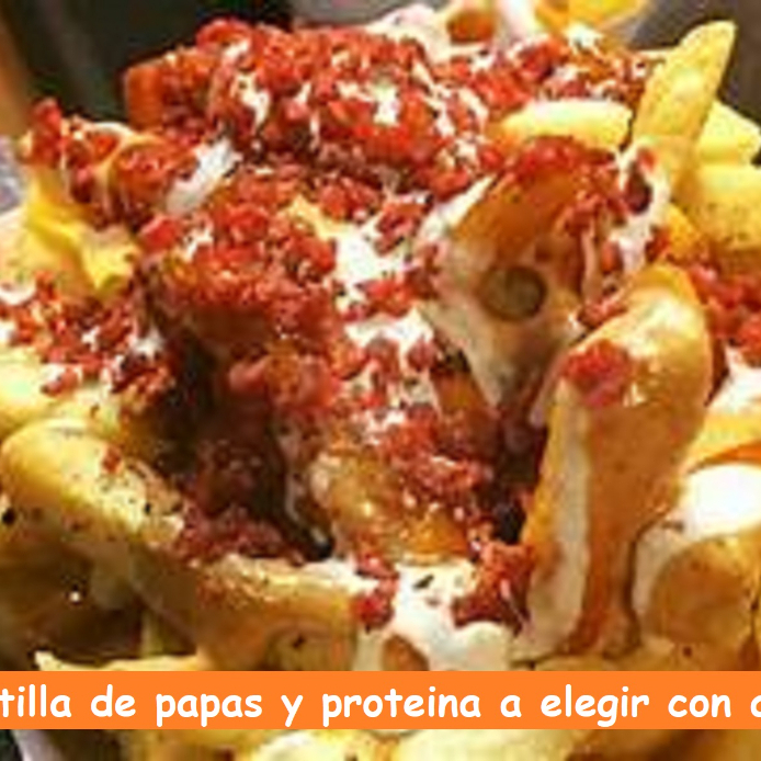 papas preparadas con 2 proteina y 3 aderezos a elegir