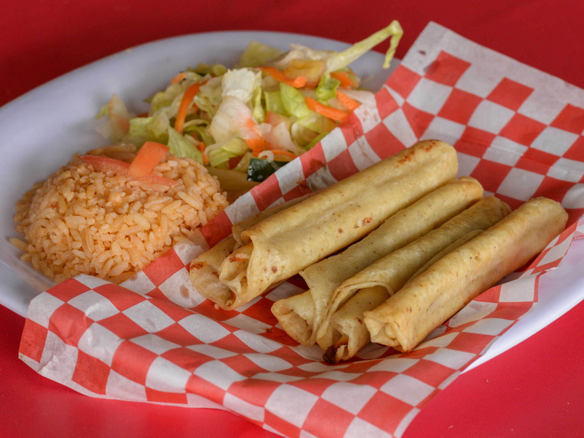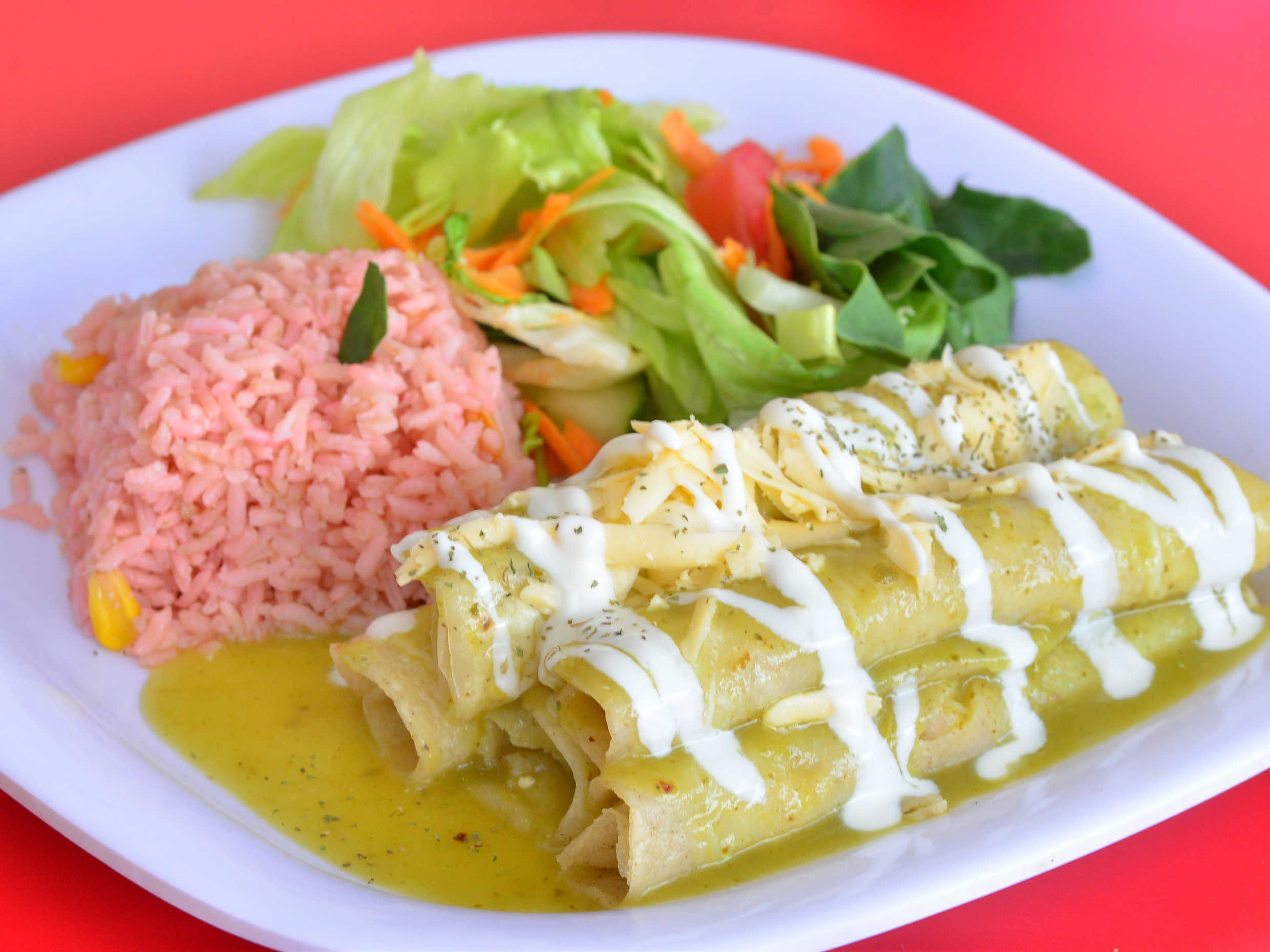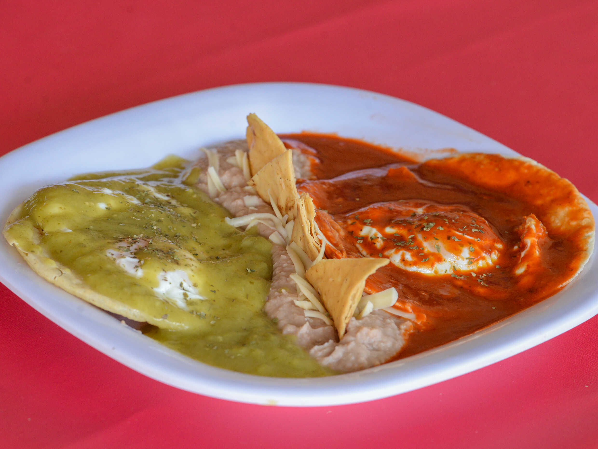 Acompañados de frijoles refritos, salsa roja, verde, chipotle, poblana, molcajeteada.