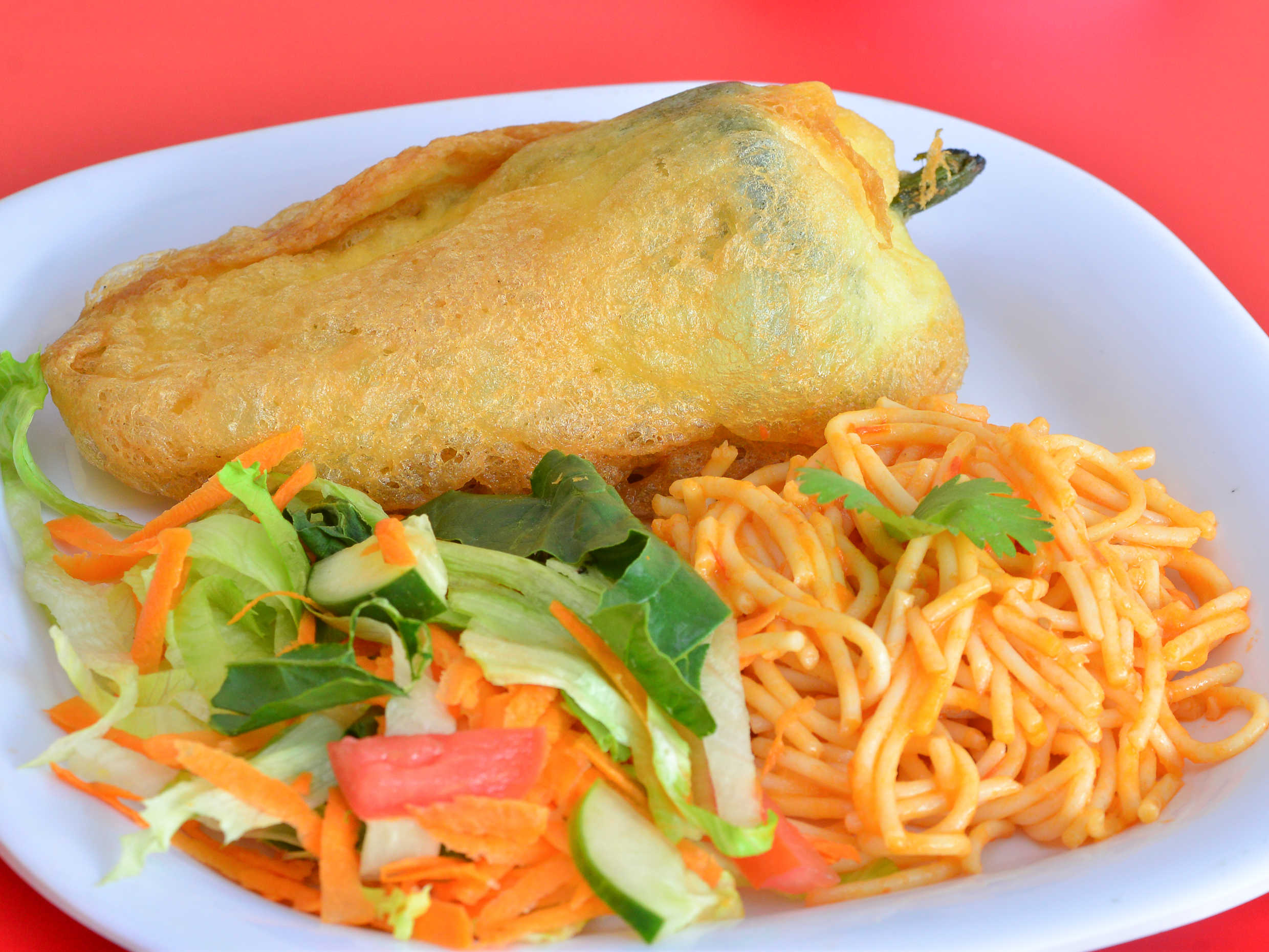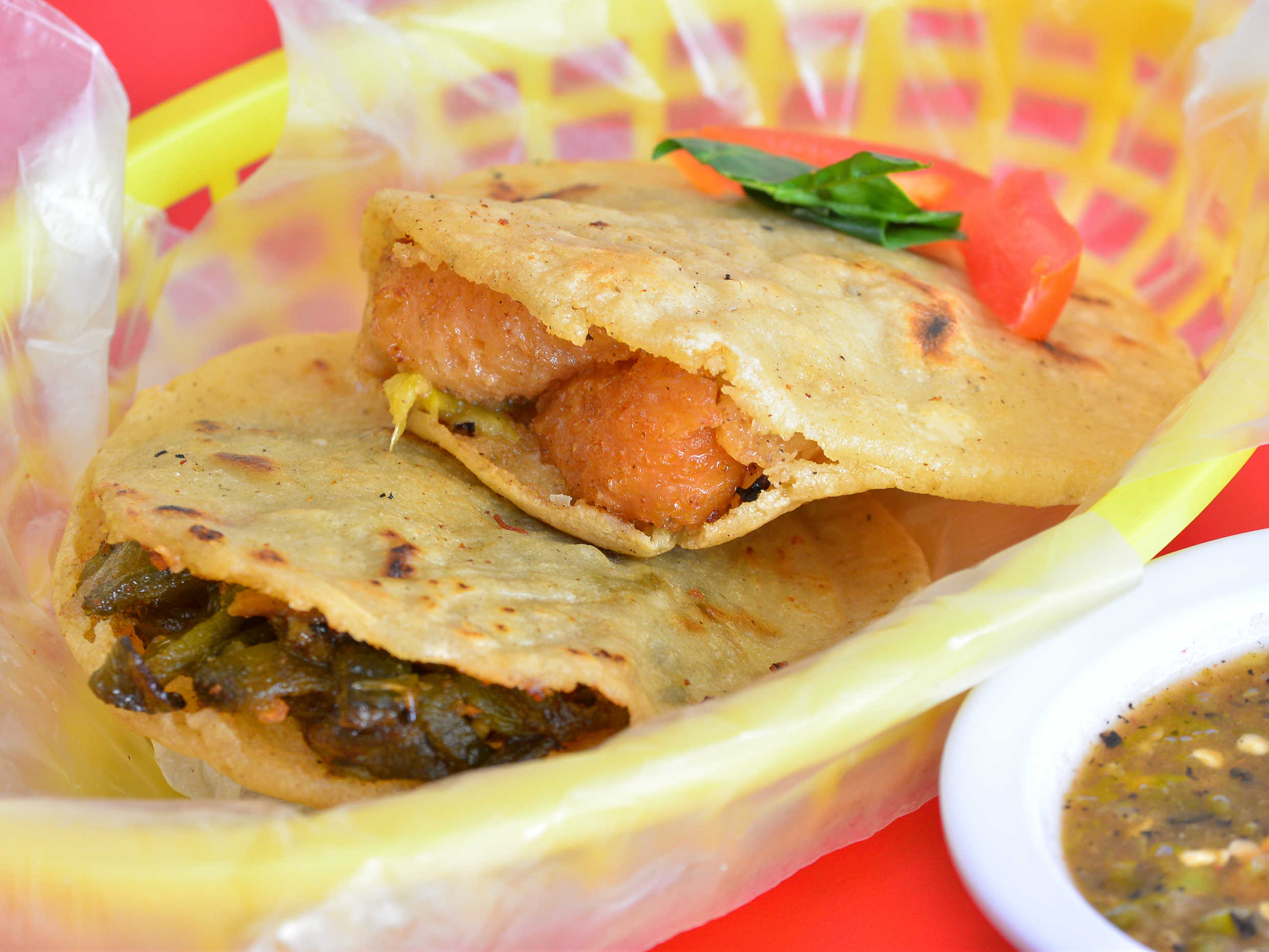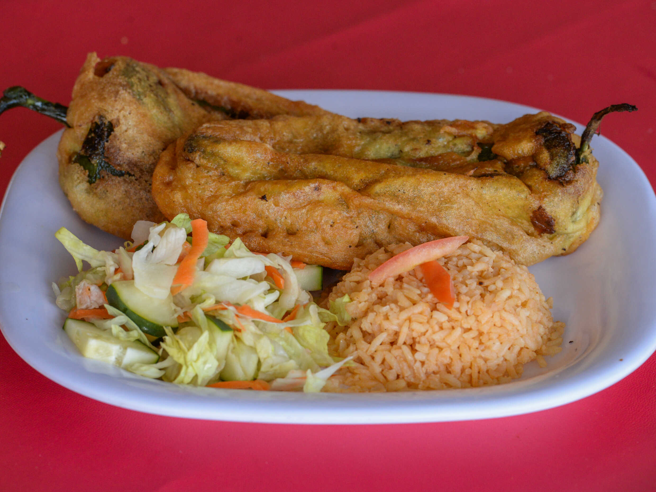 Acompañados de frijoles refritos, salsa roja, verde, chipotle, poblana, molcajeteada.