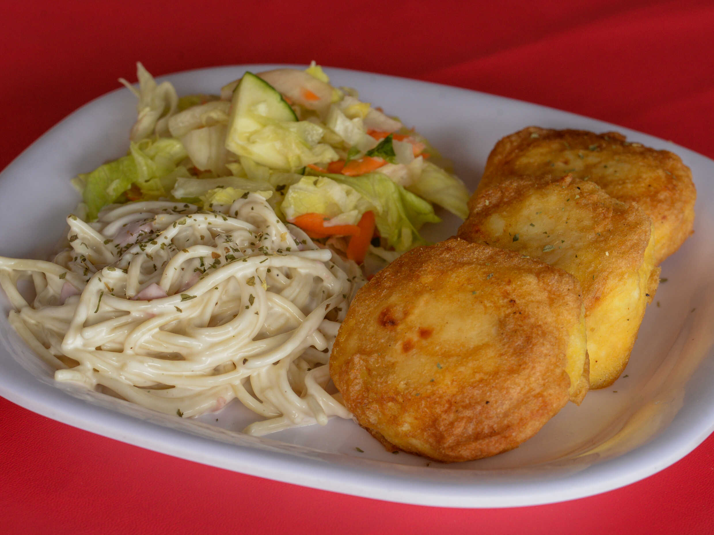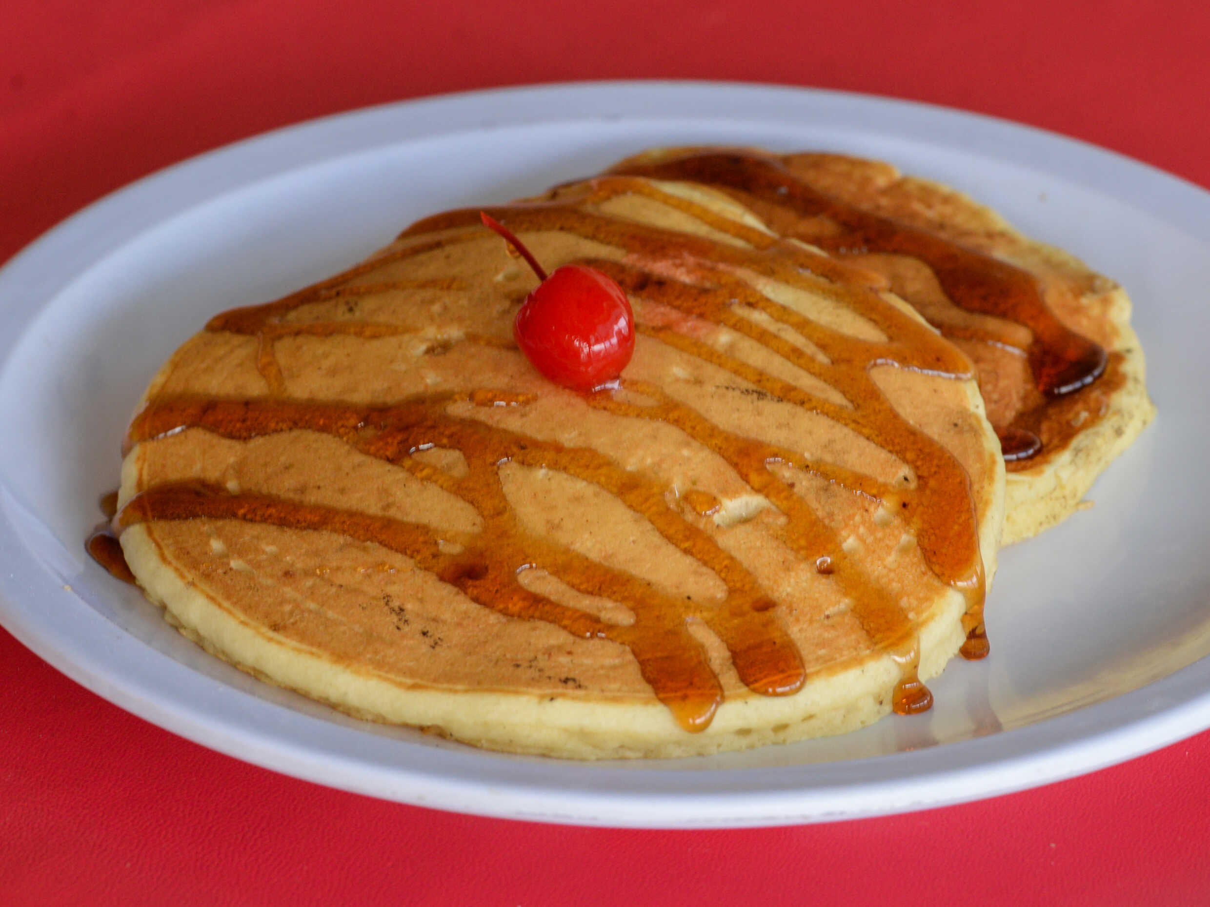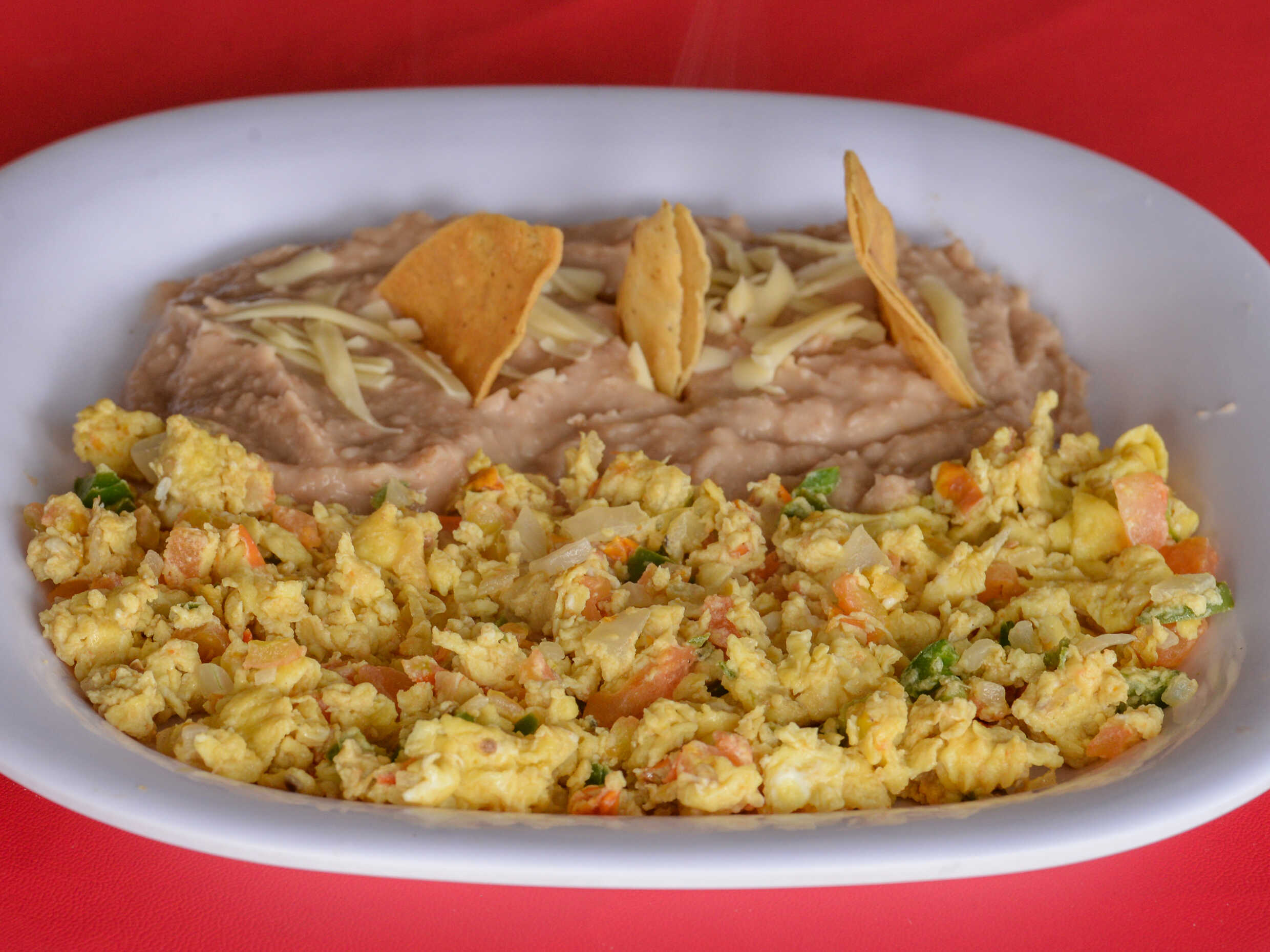 1 huevo estrellado o revuelto, 1 mini hot cake y una quesadilla.