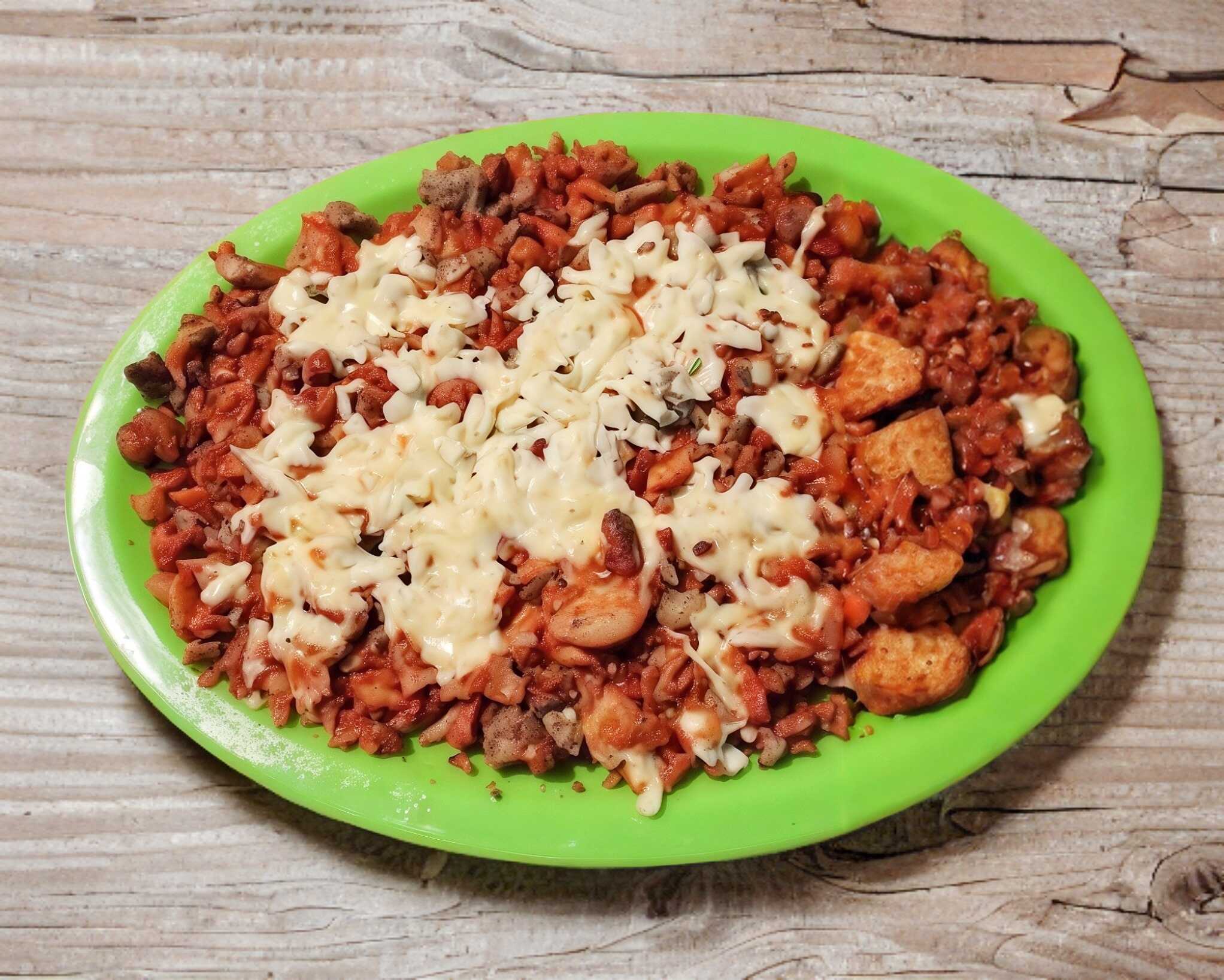 Deliciosa mezcla de champiñón, pimiento morrón, cebolla, tomate y gratinados con queso.